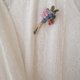 每朵花用白色绣线鈎出, 加上定型水固定,每个扣针和耳环用手工鈎花而成, 在衣服上扣上成为一个小饰品。