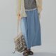 - 【牛仔蓝】美式复古 鬆緊腰棉质/高腰长裙