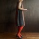 这款连身洋装采用无袖A字版型,长度及膝(模特儿身高157厘米)。前后领口皆为船型领,后方单颗钮扣设计,方便穿脱。