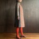 羊毛 70%、其他 30% 混纺布料。为带有深棕色为基底的混色织纹。采用箱型褶襇设计,方便活动。