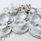 精美的象牙色瓷器和带有巴伐利亚签名的花卉图案。 6 人套装,包括 6 个带碟子的杯子、一个牛奶壶和一个糖罐。清新、轻盈但完整、实用、要求不高而且……美丽。品相完好,无划痕,无缺口 方面: 糖罐:高12.5cm,宽16cm(含把手) 奶精:高 9 厘米,宽:11 厘米 杯子:高4.7厘米,直径7.5厘米 碟子:直径11.8cm