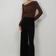 不对称领设计|单肩三角线条,巧妙展现锁骨线条 抓皱细节|呼应领型不对称抓皱,营造立体层次感,修饰身形线条 微柔光面料|柔滑微光面料,低调轻奢 亲肤舒适|轻薄弹性材质,亲肤透气 百搭单品|可轻松搭配高腰裤或裙装,适合日常与派对场合 *主要面料:70% 嫘萦/莫代尔,25% 聚酯纤维,5% 弹性纤维 *颜色:黑、咖 *台湾设计打版,中国代工 (模特儿及尺寸信息写于下方,尺寸测量均为平量宽度) [FEATURE] Features a triangular one-shoulder design that gracefully highlights your collarbone. Asymmetric ruching complements the neckline, adding depth and a flattering silhouette. Smooth, subtly shimmering fabric delivers understated luxury and refined elegance. Lightweight, breathable, and stretchy material ensures all-day comfort. Minimal yet detailed, pairs effortlessly with high-waisted trousers or skirts for both casual and party occasions. [MATARIAL] * Main Fabric: 70% Rayon/Modal,25% Polyester,5% Spandex * Colors: Brown / Black