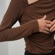 不对称抓皱莫代尔上衣 - 咖 - 女装上衣 - 棉.麻 咖啡色