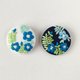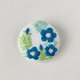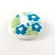 这是一款绣有美丽蓝色绣球花的胸针。花朵以鲜艳的蓝色绣线刺绣而成,叶子则运用黄绿与薄荷绿绣线,营造出细腻的层次感。