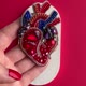 这款令人惊艳的手工胸针,以解剖学心脏为造型,是一件真正可穿戴的艺术品。它精心绣上闪烁的珠子、水晶和玻璃元素,象征着热情、力量、创造力与深刻的情感。