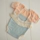 Newborn girl beige and pale teal lace photo prop romper SIZE newborn up to 14 days. 3-4 (6-9 lbs) MATERIALS Used so soft jersey , lace . COLOURS Beige, pale teal
