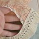 Newborn girl beige and pale teal lace photo prop romper. Frilly onesie first pic