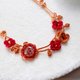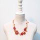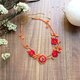 红色橘黄色小花织物闪石颈链 以真花及干燥花制造透明树枝珠子 客制化产品 人手用心制作 香港原创 金色幼链子配件