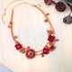 - 红色橘黄色小花织物闪石颈链以真花及干燥花制造透明树枝珠子客制化产品人手用心制作香港原创金色幼链子配件