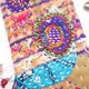 "Kantha" 这个词指的是盛行于南印度的一种刺绣法,当地妇女用旧纱丽或层叠或拼贴成一大片布料后,再一针针缝上犹如雪花般的细点,以补强布料结构,接着缝制成各式物品
