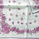 这是一条浪漫迷人的复古手帕,在带有柔和人字纹理的布料上饰有盛开的紫色玫瑰。花瓣以柔和的锦葵色和粉红色调绘制,展现女性的优雅与永恒之美。背景采用精致的浅灰色几何蕾丝状图案,增添了静谧的深度与精致感,却不过分抢走花卉图案的风采。以低调的灰色边缘收尾,增添一抹优雅。这是一件真正迷人的收藏品,捕捉了花卉艺术柔和、复古的浪漫气息。