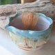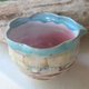 杯外侧饰有釉面大理石纹。杯口呈花痴形,绿色,釉色流丽,杯内为粉红。