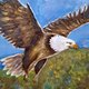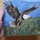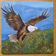 一只巨大而雄伟的白头海雕,翱翔于绿意盎然的山林之上。
