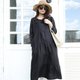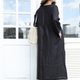 100% 亚麻,穿着舒适 附侧边口袋 背后有长拉链 采用拼接布料工艺 颜色:黑色 均码 胸围 38" 肩宽 16" 袖长 20" 洋装全长 47" 裙摆宽 61" 模特儿身高 165 厘米,胸围 32" / 腰围 24" / 臀围 36"
