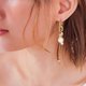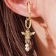 锆石迷你蜜蜂搭配珍珠的金色系长耳环,适合冬季氛围衣物