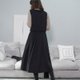 - 设计上采用简洁利落的背心与百褶半裙结合的方式 背心前片为开口单排扣设计 扣子采用哑光的不规则复古扣 既保留了复古感,同时也方便穿脱