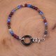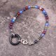 由红玛瑙、茶晶、萤石、紫水晶等多色的天然石所组成的手串,叩头处缀以黑色玛瑙环,珠子较小,轻巧可爱,缤纷多彩。