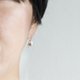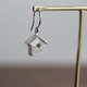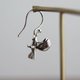 Asymmetry earrings with the motif of a parent bird that feeds the bird's birdhouse and chicks.