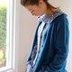*纱线* 开襟毛衫,材质30%的羊绒,40%的澳毛。 含羊绒的手感会更软糯,质感很不错。 深孔雀蓝,特别适合春秋搭配。 立体蘑菇针,精致耐看。 衣身前还有两个小口袋, 这个设计点让衣服有了年轻的感觉。 *尺寸* 请注意,尺码标和洗水唛一起在衣服的侧缝。 S 胸围96 肩宽38 袖长58 袖围32 衣长61 m 胸围100 肩宽39 袖长59 袖围33 衣长62