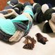 猫咪、狗狗、兔子等动物皆适合玩 。运用厚实布料的特性,层层堆叠编织,多层藏食空间,很厚、很长的鱼尾绳,可以慢慢的翻找“嗅闻”。