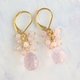 天然宝石耳环 玫瑰石英 18金PVD镀金防 过敏挂勾款