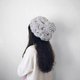 - 粗针麻花可拆毛球针织毛线贝蕾帽-冰灰