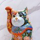 招财猫的整体造型优雅,右前爪高高举起,象征招财进宝 💰。