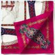 环绕中央图案的是一圈精巧的边框,由缰绳、马络头、花饰与金属装饰细节构成,构图均衡对称。鲜明的粉色边框与柔和的象牙白背景形成鲜明对比,视觉效果更为突出,而宝石色调的点缀则增添了丰富感与精致度。
