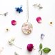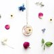 用的每一朵花儿并非市面上的现有干燥花材,而是设计师由鲜花干燥制作成的干燥花。从购入鲜花、剪下花朵、干燥花材至制作成各种不同的手作,每一件手作品也充满着对花的感情。即使是相同品种的花,每一朵也是独一无二。