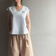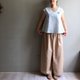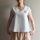 山谷水声/ 水蓝色棉麻法式袖小上衣