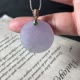这件紫罗兰圆牌是冰种料取下来的,圆牌有平安无事圆圆满满的寓意,作品色泽淡雅,坠头部分玫瑰金拉丝,让整件作品更有质感。