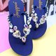 Jewelled Sparkle Sandals Rhinestone Heart Shape Blue Flip Flops BY JNOPPON - 拖鞋 - 橡胶 蓝色