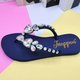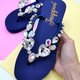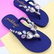 Jewelled Sparkle Sandals Rhinestone Heart Shape Blue Flip Flops BY JNOPPON