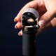 2.轻压开瓶器顶盖,取下盖子并对准瓶子,使用嵌入式切割器旋转以切开锡箔