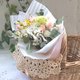 花材:索拉玫瑰、旱雪莲、星辰花、金合欢、进口满天星、尤加利、兔尾草(日本进口)