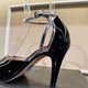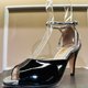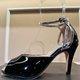 选用黑色漆皮配上凉银色环扣点缀,后跟的线条交错如同在舞池上旋转着。