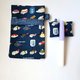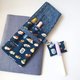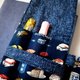 [3枝装钢笔笔套, 和风布笔袋--深蓝色日本寿司猫]
