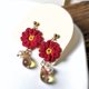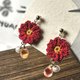 手钩深红小花,中央透出一丝金色,如余晖轻轻拂过。搭配微透明的渐层变色水滴珠与柔白珍珠,散发出温柔与力量交织的魅力。