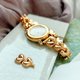 Mila Schön 除了出品鞋包衣服外,还推出了不少饰品类的产品,这只手表就是其中之一。 它的外壳采用的是金色的金属物料(拍出来的色差比较大,实物是偏浅一点的正金色),表面很小,里面的数字以金色点点代替,非常简洁。 表面的外壳上面刻了“ mila schön ”字样的浮雕,很有质感。 而它最突出的,就是一颗接一颗的爱心表带,属于可动的链带,可调整长度。 背扣的位置有保险链,戴脱的时候也不怕手滑。