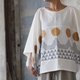 这款和服式宽松上衣的图案是透过木版印刷印制于布料上。