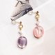 - 铜镀金耳针,硅胶耳堵,粉紫捷克珠约1.2X1.4CM (每个纹路都不一样喔!商品图仅供参考)