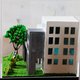 定制化中大景观 - 压克力外盒约20厘米的景观模型,包含多个有半透明窗户的建筑区块、2个人物摆饰
