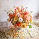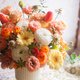 ・经典丰富的毕德麦亚式桌花,高低错落的层次和缀以鹅黄、浅绿的粉橘主色调,搭配出可爱而随性的桌花