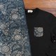 - 日本蓝染古布口袋黑色卫衣。 85%棉+15%涤纶,340g重磅,面料手感柔软舒适,合体版型,上身舒适且百搭。 此商品细节使用了日本蓝染古布制作口袋,每张古布售完不补,每件同款花纹的花位细节随机哦,不会完全一样。