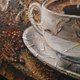 咖啡杯油画原创压克力现代静物金艺术纹理画布担架上的艺术品由艺术家 Ginna Paola 创作