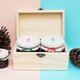 师傅手工制盒,选用无上漆的天然松木,每个盒子的纹路都独一无二,温暖的奶油色,闻的到淡淡的松木香气,简约俐落的白色腰带系上,双手捧着献上沉沉扎实的祝福。