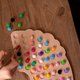 其木制彩虹玩具是孩子早期学习颜色的益智玩具。同时,透过这款木制彩虹游戏板,孩子们可以学习将绒球排列成彩虹形状。该玩具有一个夹子将其固定在一起。使用此夹具,绒球被固定并插入孔中。孩子们也可以将自己在家里做的东西放在这些洞上。是可以算的。它可以同步。 (鹰嘴豆、蚕豆、球、绒球等)。透过这款抓手玩具,孩子们的手和手指肌肉得到发展。儿童的注意力和手眼协调能力也会发展。这款木制玩具完全天然,由山毛榉木制成。它对健康无害,不含任何染料或有毒物质。
