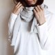 这是一条大尺寸却方便携带的优质羊毛棉混纺围巾。