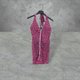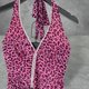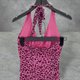 ▲描述 : 二手 骚久姬 桃红黑配色 豹纹印花 弹性 银织带 无拉链 绕颈绑带 紧身 洋装