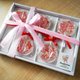 每支棒棒糖有包装袋,并以蝴蝶结缎带束口,5支个别固定装于透明礼盒内